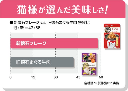 懐石は、2001年の発売以来、長年にわたり多くのお客様にご愛顧いただいております。お客様の声に耳を傾け、自社研究開発センターにておいしさと機能性を追求し続けてきた懐石は、さらに進化します。猫と飼い主の皆様の大切な時間をより豊かにする、新しい懐石をお届けいたします。こだわりぬいた美味しさをぜひ、あなたの猫様にも。