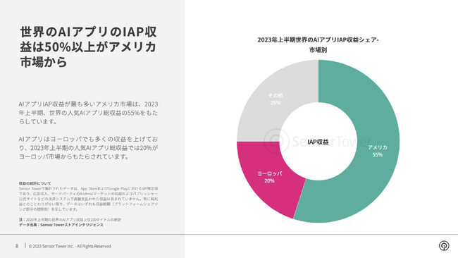 世界のAIアプリのIAP収益は50%以上がアメリカ市場から