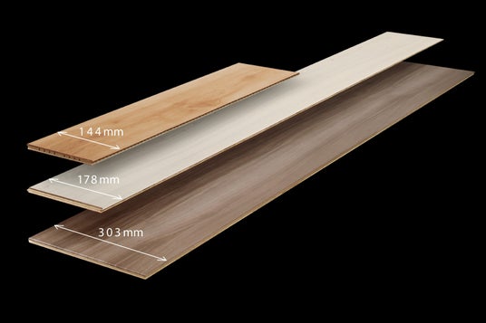 上から『トリニティオトユカ』、『トリニティ』、『トリニティグランデ』この度のバリエーション追加によって、床材『トリニティ』シリーズは、通常の『トリニティ』、マンションリノベーション向けの『トリニティオトユカ』、ワイドタイプの『トリニティグランデ』の3種類となり、使用シーンに応じて幅や性能をお選びいただくことが可能になりました。