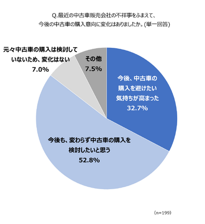 Q4. 最近の中古車販売会社の不祥事をふまえて、今後の中古車の購入意向に変化はありましたか。(単一回答)