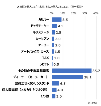 Q1.直近で購入した「中古車」をどこで購入しましたか。 (単一回答)