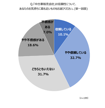 Q2. 「中古車販売会社」の信頼性について、あなたのお気持ちに最も近いものをお選びください。 (単一回答)