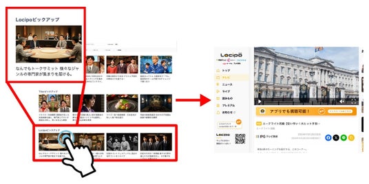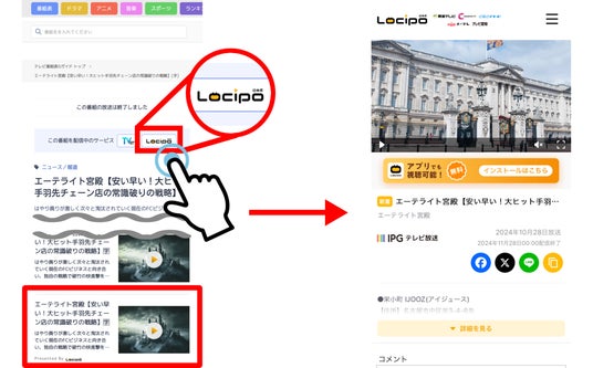 株式会社IPG(本社:港区、代表取締役社長:岡本賢人、以下「IPG」)は、モバイルアプリ「Gガイド テレビ番組表(Android、 iOS 対応)」(以下、「Gガイド テレビ番組表」)及びウェブブラウザ版の「番組表.Gガイド」において、11月5日(火)より全国の番組表から動画配信サービス「Locipo」へのアクセスが可能になりました。