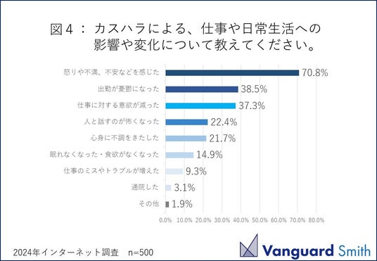 「カスハラによる、仕事や日常生活への影響や変化について」問う調査結果