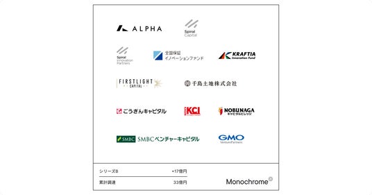 建築一体型太陽光パネルを開発・販売する株式会社モノクローム(本社:神奈川県横須賀市、代表取締:梅田優祐)は、シリーズBラウンドで総額17億円の資金調達を実施しました。今回の調達により、エクイティ累計調達額は33億円となりました。