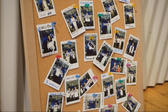 会場では「あなたの目指すリーダーシップの姿を教えてください。」という質問とともに、撮影コーナーとコルクボードを設置。チェキで1人1人を撮影した後に、自身の目指すリーダーシップ像を記載いただき、コルクボードに掲載しました。