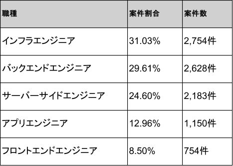 8,874件のフリーランスボードに掲載されている実際のフリーランス案件から作成しました。