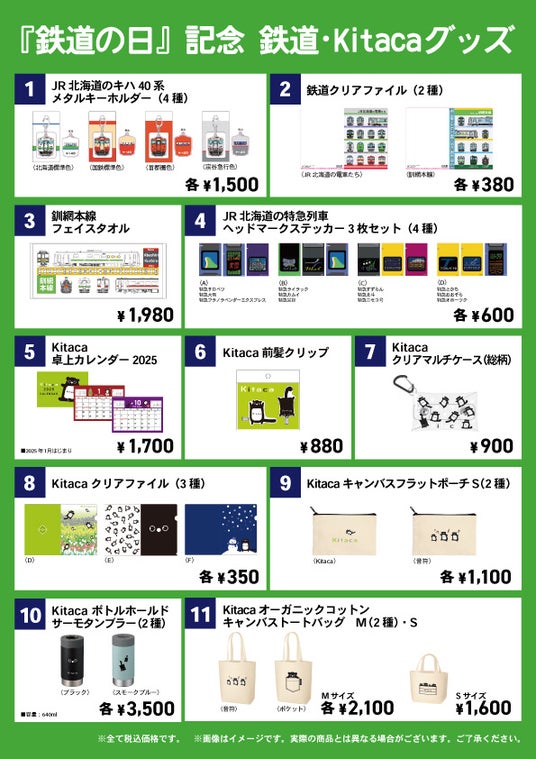 JR北海道フレッシュキヨスク株式会社(本社:北海道札幌市、代表取締役社長 小山 俊幸)は、10月14日の『鉄道の日』を記念して、同日にオリジナル鉄道グッズ・Kitacaグッズを発売します。