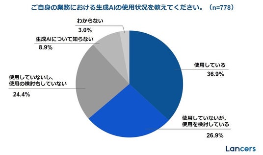 ランサーズが2023年9月に「Lancers」に登録するフリーランス(778名)を対象に実施した「生成AI活用の実態調査」では、「生成AIを業務で使用している・使用を検討している」との回答が6割を超え、生成AI活用への前向きな姿勢がうかがえます。一方で、「業務で生成AIを使用する上での課題」として、情報漏洩や著作権侵害といったリスクに対する懸念の声が顕在化しています。また、フリーランスに仕事を依頼する企業においても、依頼先のフリーランスの生成AI活用による、業務プロセスでの情報漏洩や納品物の著作権侵害といったリスクを回避する必要性がますます高まっています。