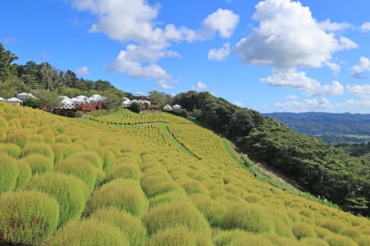 千葉県富津市にある“花と動物たちのエンターテイメントファーム“「マザー牧場」では、約8,000株の「コキア」が秋色への変化を始めており、秋の気配を感じることが出来る景色が広がっています。