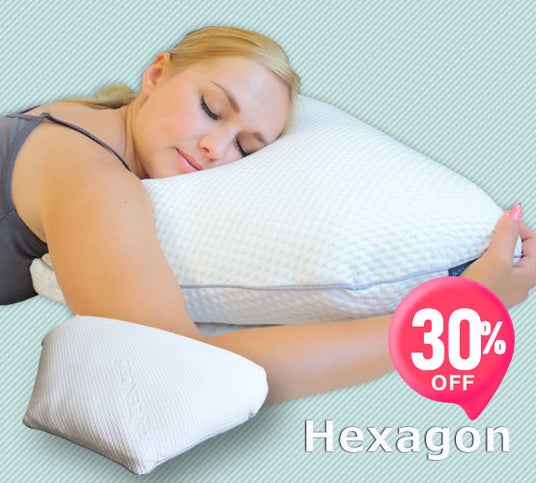 「BlueBlood」をチップ状にし、ウレタンチップと混合することで、モチモチふわっと軽く柔らかな気持ちいいホテルピロー。横向き寝やうつぶせ寝にも適した六角形の枕です。
