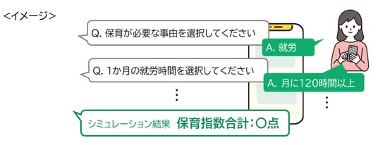 このたび、入園希望施設の検討をよりスムーズに進めていただけるよう、各世帯の保育の必要性の度合いを表す保育指数を、保護者自身が簡単に試算できる「指数シミュレーション」を新たに実装し、9自治体で提供を開始します。