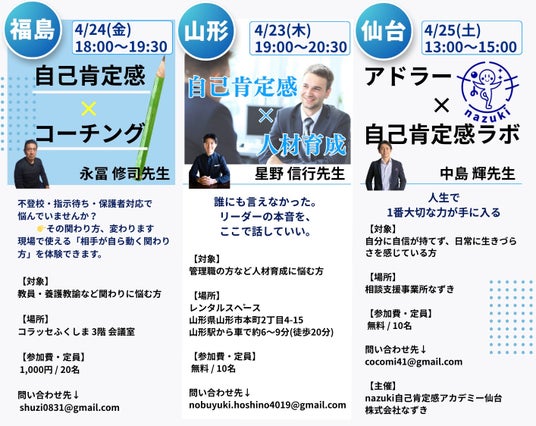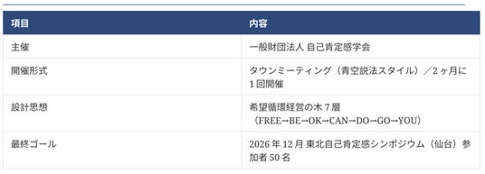 一般財団法人自己肯定感学会は、2026年4月より東北4県(福島・山形・宮城・青森)にて「東北タウンミーティング 第1回」を順次開催いたします。