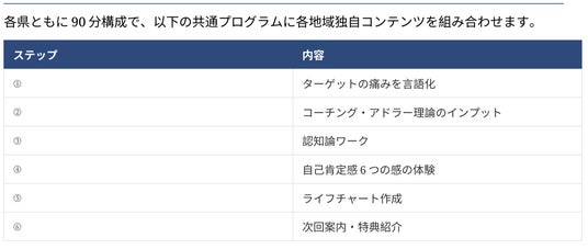 以下の共通プログラムに各地域独自のコンテンツを組み合わせます。