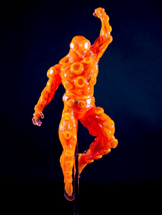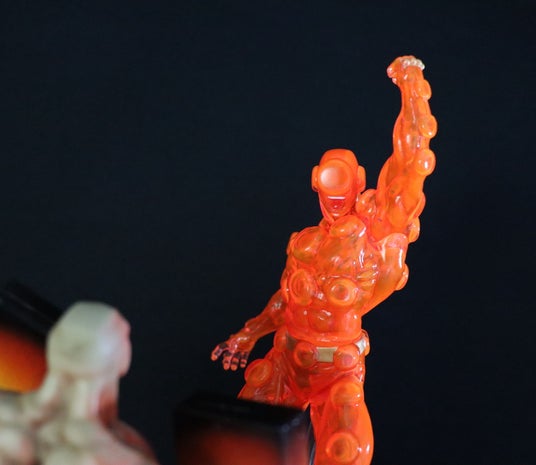 ペインマン体表を構成する無数のエアバッグを再現したクリアボディに、絶妙な透明感が残るよう蛍光色の塗料を流し込む調整の難しい技法で、ジャンクマンの猛攻を受け、身体が熱で状態を見事に再現!