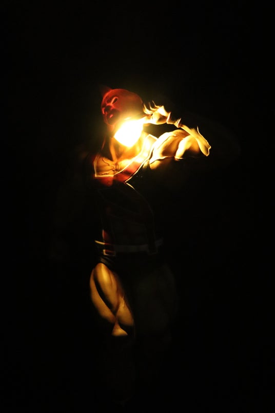 原作でも絵に暗い陰が入り、自身の抱いている憎悪を露わにする姿を、その強い憎悪のオーラが身体を包んでいるかのようなイメージで再現いたしました。