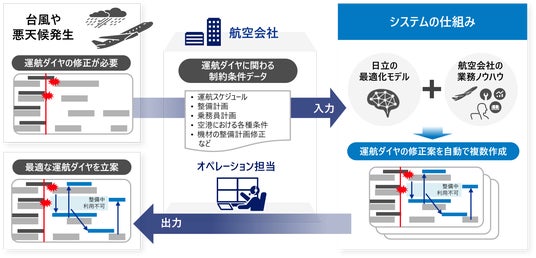 全日本空輸株式会社(以下、ANA)と株式会社日立製作所(以下、日立)は、株式会社日立コンサルティング(以下、日立コンサルティング)とともに、イレギュラー発生時に運航ダイヤの修正案を高速・最適に自動立案するシステム (以下、本システム)を、ANAの国内線オペレーションを対象に2025年7月より稼働開始しました。本システムは、ANAが培ってきた運航のノウハウと日立の技術を掛け合わせ、共同開発したものです。同様のシステムは本邦航空会社として初めてのものです。