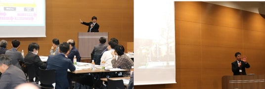 芝浦工業大学柏中学高等学校 越野貴嗣教諭(写真左)と神田女学園中学校高等学校 芦澤康宏学校長(写真右)による発表