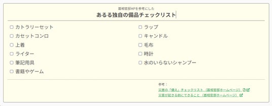この特集では、ご家庭の防災備蓄品が十分か簡単にチェックできる「備品チェックリスト」をご用意しました。不足しているものがあれば、この機会にぜひ備えてください。