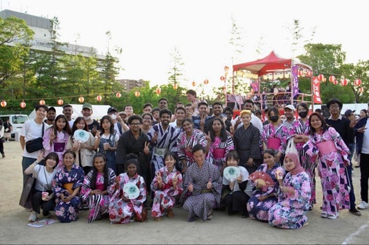 市民納涼民謡大会に訪れた、日本語学校の外国人留学生 / 東雲公園 / 2023.7.15