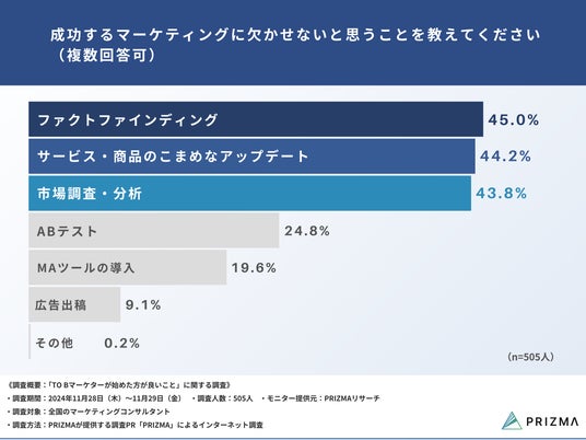 そこで今回、株式会社PRIZMA(https://www.prizma-link.com/press)は、全国のマーケティングコンサルタント505名を対象に、「TO Bマーケターが始めた方が良いこと」に関する調査を実施しました。