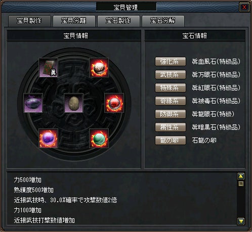 今回のリニューアルでは宝貝と宝石システムを改善し、宝貝分離・宝石製作・宝石分解などの機能を追加したほか、新たに製作可能な宝石が多数追加され、強化の幅が更に広がりました。さらに、宝貝関連のUIが刷新され、視覚的に見やすくなりました。装着中の宝石や龍の卵が明瞭に表示されるほか、発動効果の詳細も確認可能です。
