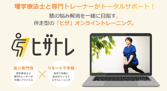 「ヒザトレ」は変形性膝関節症をはじめ、日常生活のなかで膝の痛みに悩む方をターゲットにした「オンラインの膝トレーニングサービス」です。通院してリハビリを受けたり、ヒアルロン酸注射やサプリメント摂取では満足できない方に、日本整形外科学会の診療ガイドラインで推奨される筋力強化訓練および関節可動域訓練等のトレーニングを理学療法士の伴走のもとで提供するものです。