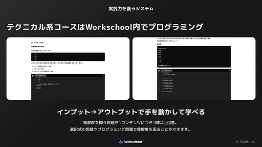 Workschool内(ブラウザ環境)で開発の実践が可能。