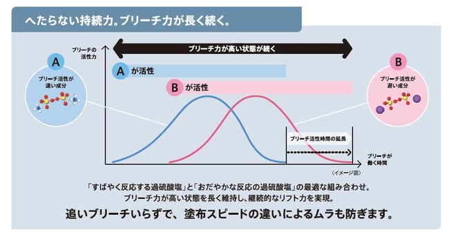 サロンにおけるブリーチの利用は、ハイトーンデザインをはじめとして、バレイヤージュやインナーカラーなどのデザインカラーはもちろんのこと、昨今の注目市場となっている「脱白髪染め」施術など、いまやファッション世代のみならず大人世代への提案においても欠かせないものとなっています。そのため、多くのスタイリスト様がブリーチ剤に求めることとして「明るさを表現できるパワー」と同時に「ダメージへの配慮」が大きなポイントとなっています。
