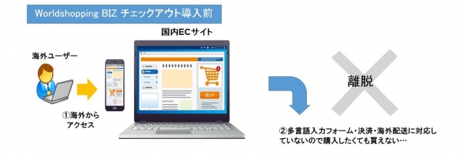 『WorldShopping BIZチェックアウト』は、海外販売をはじめたいすべての事業者に対して、多言語対応・海外決済・海外配送までを一気通貫で提供する越境EC対応サービスです。