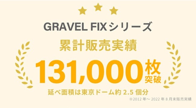 耐荷重は約60t/平方メートル (グラベルフィックスライト)と原材料のポリプロピレンの強みを生かし、軽量にもかかわらず耐熱性、衝撃強度に優れた非常に丈夫な製品として品質にも自信をもって販売しています。この度、日本総代理店のヤマチコーポレーションは、累計販売実績131,000枚、延べ面積は東京ドーム約2.5個分を突破しました。(※2012年~2022年8月末販売実績)
