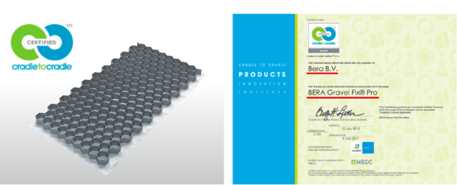 庭園景観としての砂利需要から公園・文化財施設や、寺社仏閣、墓苑(霊園)にも需要拡大中の『砂利舗装材|グラベルフィックス』の原材料はポリプロピレン(リサイクルPP)で破棄時においても再生が可能なため、数多くの建築家や建物オーナーに認められ評価されている「Cradle-to-Cradle認定」を受けている地球にやさしいエコ商材です。