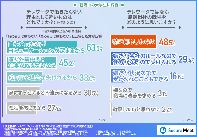 就活中の大学生が、必ずしも原則出社の職場を敬遠しているわけではないといえるでしょう。