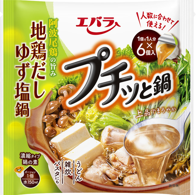 エバラ食品工業株式会社(本社:神奈川県横浜市、代表取締役社長:森村 剛士)は、2022年8月5日(金)より、1個で1人分の鍋の素「プチッと鍋」シリーズの新アイテムとして「プチッと鍋 地鶏だしゆず塩鍋」を全国で発売いたします。また、シリーズのパッケージデザインをリニューアルし、順次切り替えを実施します。