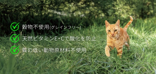 - 質の低い動物原材料不使用(フードの原材料として不適切なフェザーミールやブラッドミールなどは不使用)