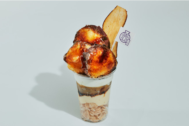 お芋ペーストとカラメル、カスタードがソフトクリームと混ざり合い、暑い夏に口いっぱいに頬張りたくなるスイーツに仕上がりました。さらに、ブリュレしたお芋を1口サイズにカットし、たっぷりとのせているので壺芋ブリュレの美味しさも味わえる特別な一品です。