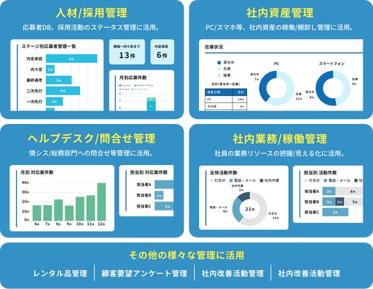 「社員からのシステム問合せ」「顧客からのクレーム」「備品・資産」「採用、入社までの各種手配」等の業務を一例に挙げると、専用の管理ツールを導入していない場合、多くの企業ではExcelやGoogleスプレッドシート等の帳票での管理が一般的です。