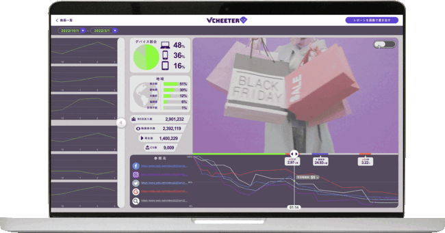 サービス正式リリース時には、下記の動画分析には必須の数値やデータを計測し、スクリーンショットをするだけで分析レポートになるダッシュボードの自動生成が可能となる予定です。※2