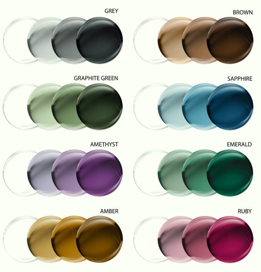 1991年に世界初となるプラスチック製調光レンズの販売を開始して以来、調光レンズのパイオニアとして長年にわたって世界的に支持され続けている「トランジションズ(R)」は、日本でもその機能、ファッション性の双方から眼鏡店、消費者に支持され、顕著な成長を遂げています。全8色ものカラーバリエーションの中から、ご自身のスタイルやコーディネートに合わせて自由にお選びいただけます。