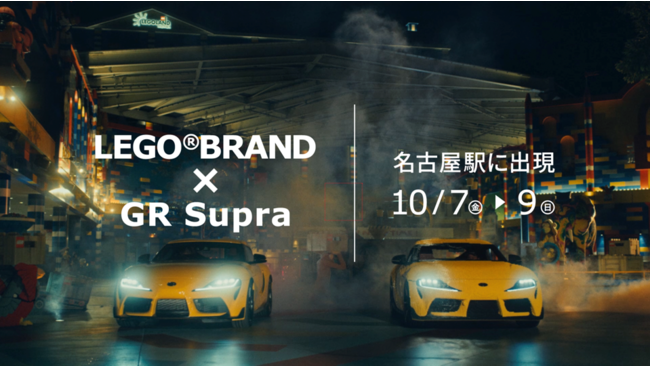 また、本イベントの実施に先駆け、10 月 7 日(金)~9 日(日)の 3 日間、JR 名古屋駅中央コンコースイベント スペースに「レゴ(R)トヨタ GR スープラ 実物大レプリカ」およびモデルとなった車両「GR スープラ 35 周年特別仕様車」を展 示。約 100 面のデジタルサイネージを用いて、3 社コラボレーションイベントを盛り上げます。