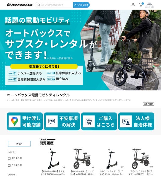 オートバックスでは、2024年2月より一部店舗にて電動バイクやキックボードといったマイクロモビリティの取り扱いを開始しており、今回の連携により、それらを月額定額制(最低利用期間3カ月)で手軽にレンタルできるようになりました。