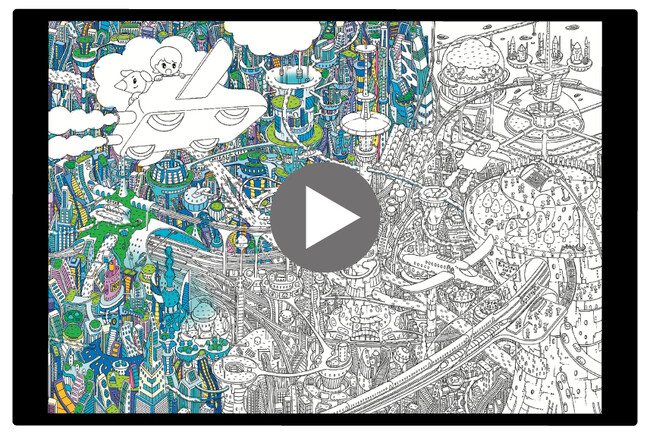 『ユメノシティ』内の1画面「ミライシティ」の着彩風景動画(作家インタビュー付き)