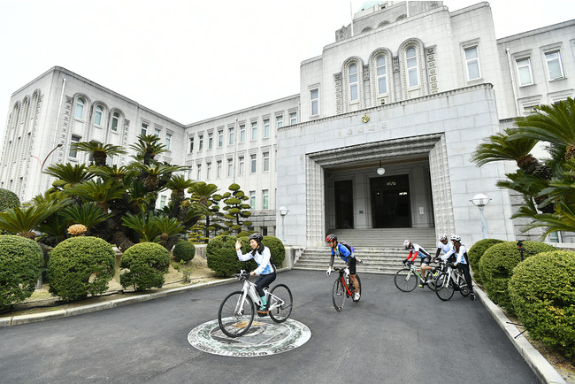 台湾との交流や四国4県での連携を推進し「サイクリングアイランド四国」の実現を目指して、先進的な取り組みを行ってきた愛媛県を“四国一周サイクリング誕生の地”として、愛媛県庁(愛媛県松山市)に「四国一周0km(ゼロキロ)モニュメント」を設置しました。