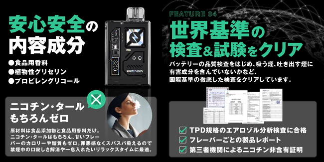 Vapenginは世界基準の検査をクリアした安心安全の持ち運びシーシャ
