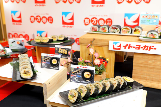 株式会社イトーヨーカ堂は、恵方巻のご注文を受け付けしており、好調な予約状況となっております。毎年人気の定番主力商品のほか、おいしく食べきれる1/3サイズの恵方巻セットや料理人監修のこだわりの巻き物、たっぷりの海鮮具材が入った海鮮巻など、お客様のニーズに合わせた幅広い品揃えで、恵方巻メニューをご用意しております。今回、恵方巻の商品説明会を行いました。