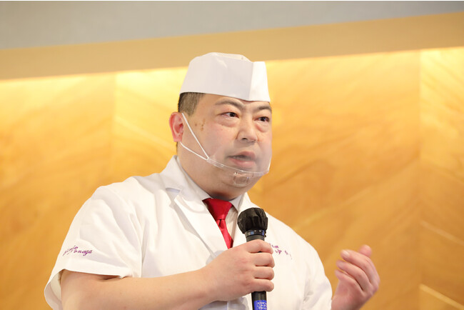 当日は老舗割烹の「日本橋ゆかり 三代目料理長 野永喜三夫」氏にお越し頂きました。野永料理長には、『日本橋ゆかり監修 国産うなぎ巻』 『日本橋ゆかり監修 国産あなご巻』 の監修をいただいております。