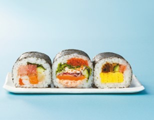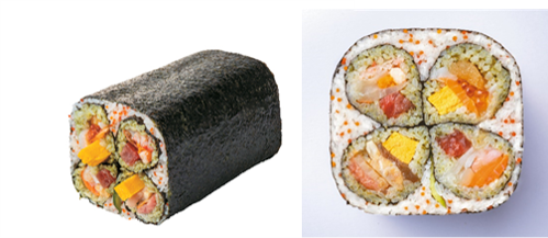【お肉ゾーン】【海鮮ゾーン】【洋風ゾーン】の3 つの味のうつろいが味わえる、よくばり恵方巻。