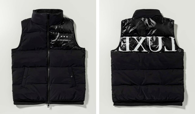 モノトーンをメインに、バックロゴが目を惹く中綿ベスト。