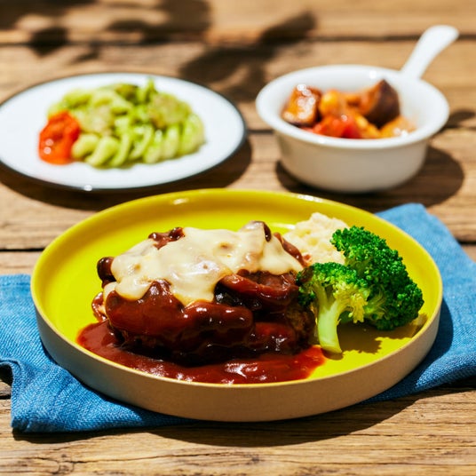 kanau「4種チーズときのこの濃厚デミグラスハンバーグ」盛り付け例