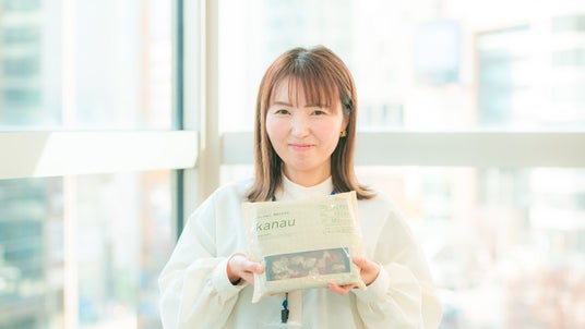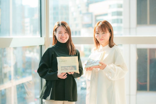 たんぱく質と食物繊維の配合を強化したkanauの商品開発を手掛けたSOYOKAZEの管理栄養士・久冨(左)と、マーケティング担当・佐野(右)